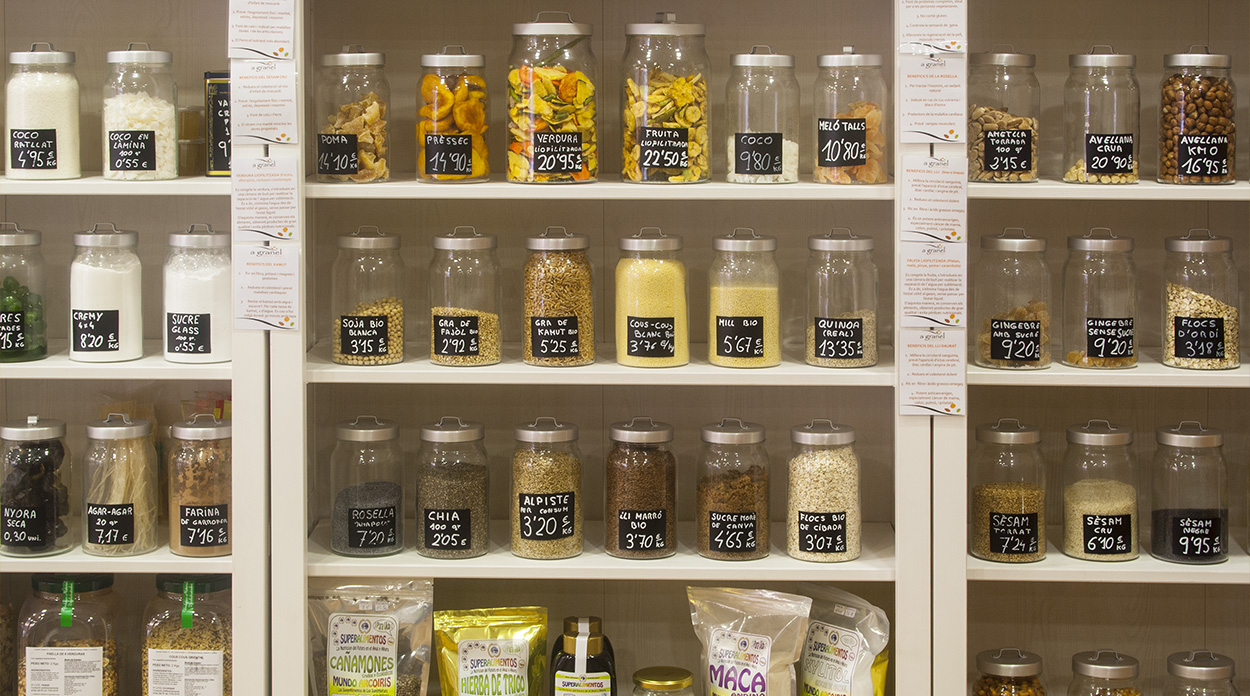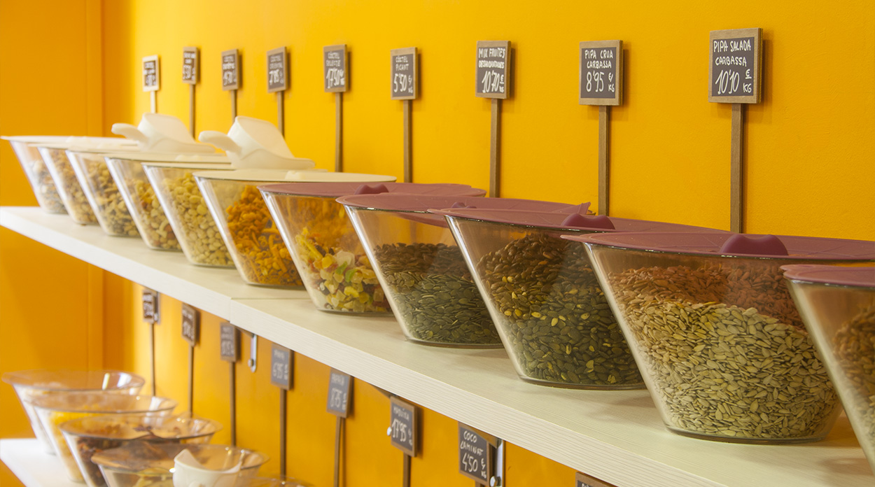 A la teva botiga “a granel” hi trobaràs gran varietat de productes sans per tu i els teus, acompanyats d’un gran assessorament professional i humà. Per concloure, volem ser la teva botiga d’alimentació a preu de marca blanca i recorda que mai tornaràs a ser tant jove com avui.