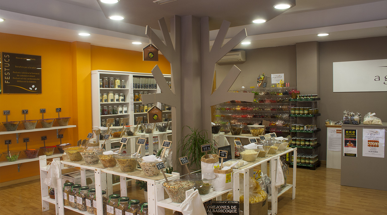 Gràcies a vosaltres, als nostres clients i amics; la botiga “ a granel” va creixent dia a dia, ampliant el sortit de productes que vosaltres demaneu pel vostre tipus de dieta; fruits secs , mix de fruits secs per amanida , bolets deshidratats, cereals, llegums, llavors, fruita deshidratada, verdura liofilitzada, espècies, productes de pastisseria…
